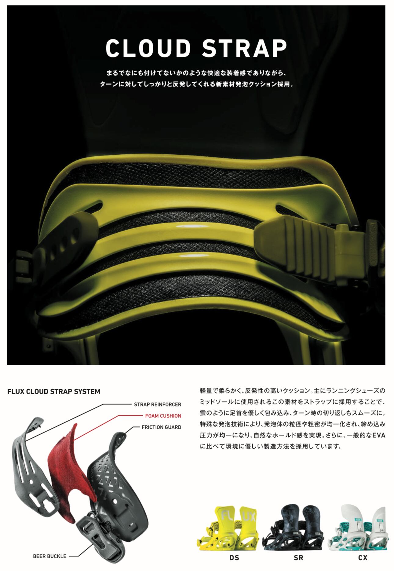 さらに柔軟かつ反発のある新素材CLOUD STRAPはジブでの瞬時な動きと可動域、グラトラでのスピンの回しやすさを向上させる。