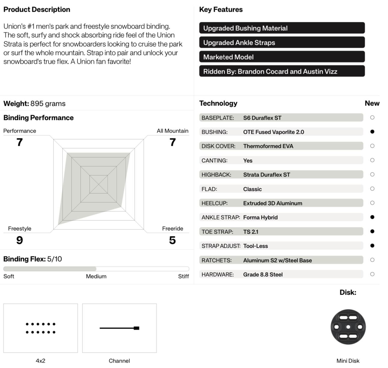 Union Strataは、柔らかくサーフィンのような乗り心地と衝撃吸収性に優れ、パークをクルージングしたり、山全体をサーフしたりしたいスノーボーダーに最適です。