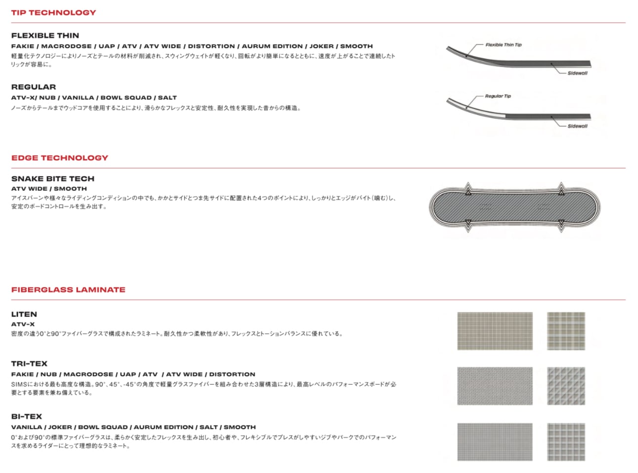 SIMSにおける最も高度な構造。90°45°、45°の角度で軽量グラスファイバーを組み合わせた3層構造により、最高レベルのパフォーマンスボードが必妻とする要素を兼ね備えている。