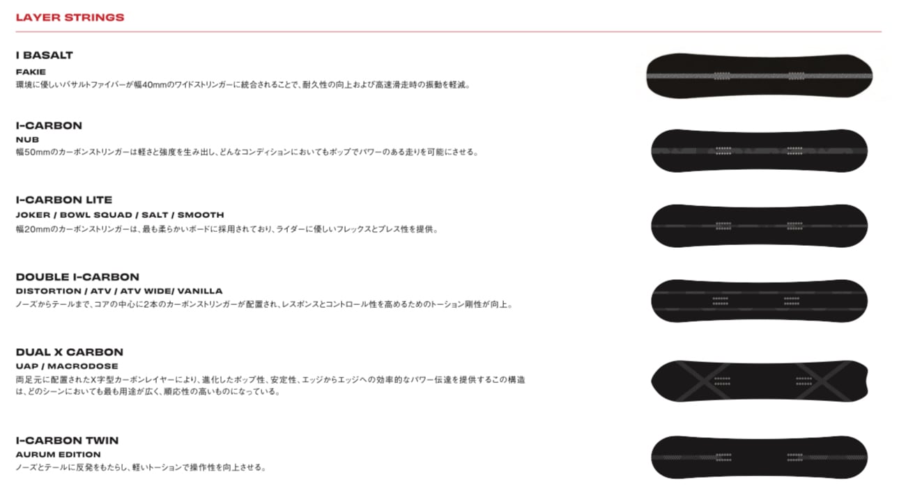 ホールバターンとキャンバーの位置に合わせて、コアの表面の厚みを部分的に調整することにより、独自のフレックスを生み出し、衝撃の吸収性とコントロール性を強化。