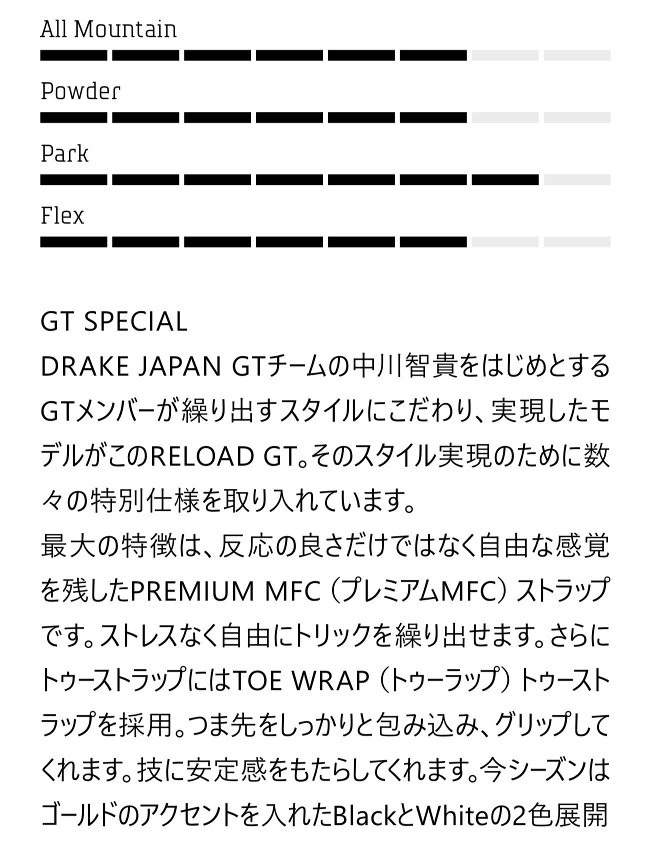 【早期予約】25-26モデル. DRAKE .『 RELOAD GT 』 . White . ドレイク . リロード ジーティー . ホワイト . パウダー . カービング . フリーラン . パーク . グラトリ . スノーボード . 中川智貴