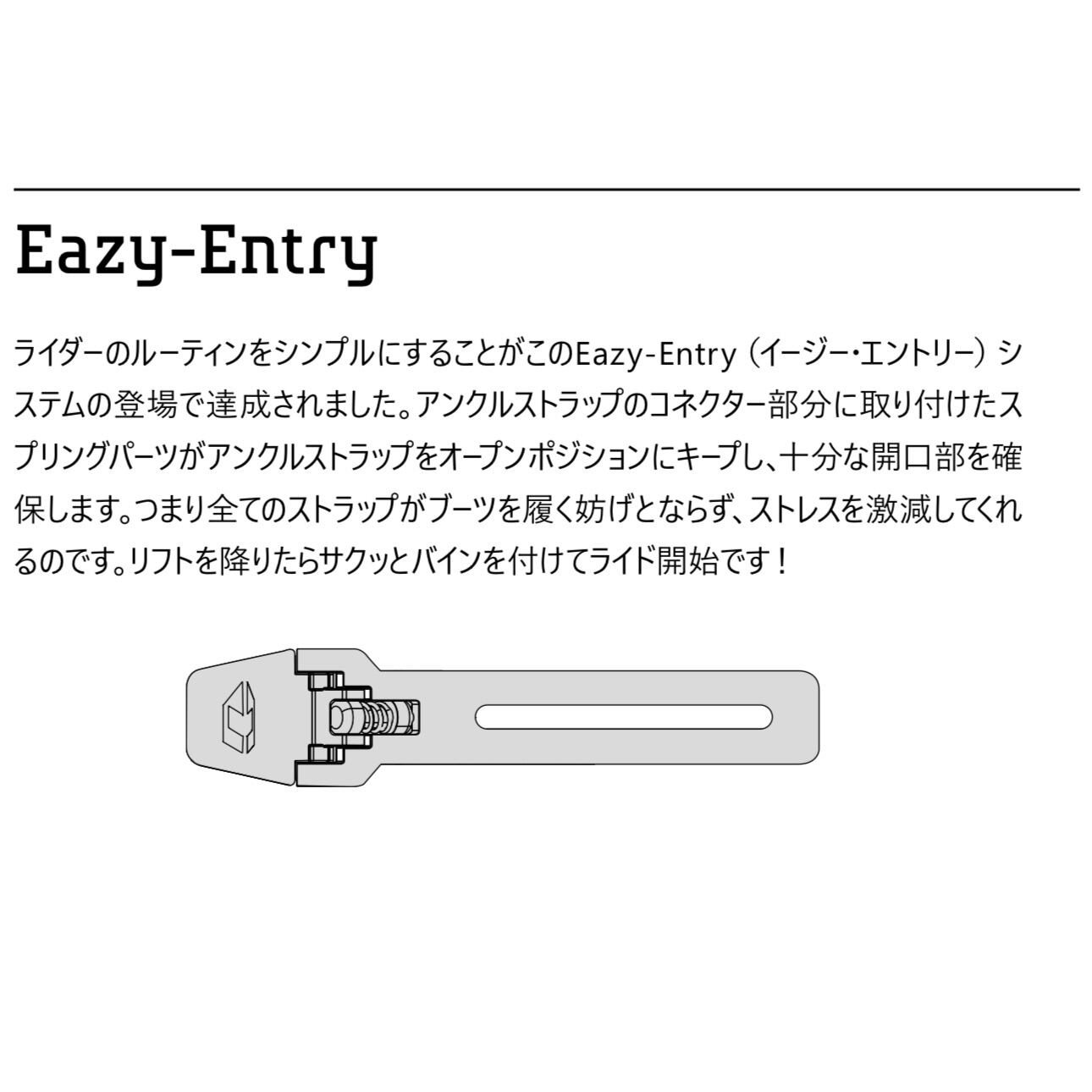 さらにはEAZY-ENRTY (イージー・エントリー)システムを採用し、すべてのストラップがブーツを履く妨げとならずストレスを激減してくれます。