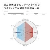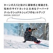 ◇ 短めのサイドカットと太めなテーパードディレクショナルシェイプの組み合わせがターンの入りと抜けに躍動感と機敏さを提供します。