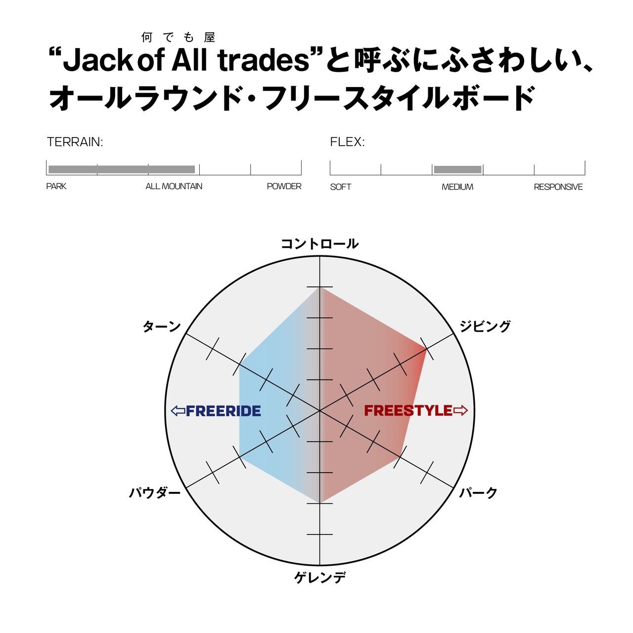 ◇ Craftはまさしく”何でも屋”と呼ぶにふさわしいフリースタイルボードです。ディレクショナルツインに、走破力を備えたコルクサイドウォール、Assassinに起源を持つ万能なオールマウンテンシェイプを採用。ロックアウトキャンバーがターンを簡単にし、深い雪での浮力も提供します。