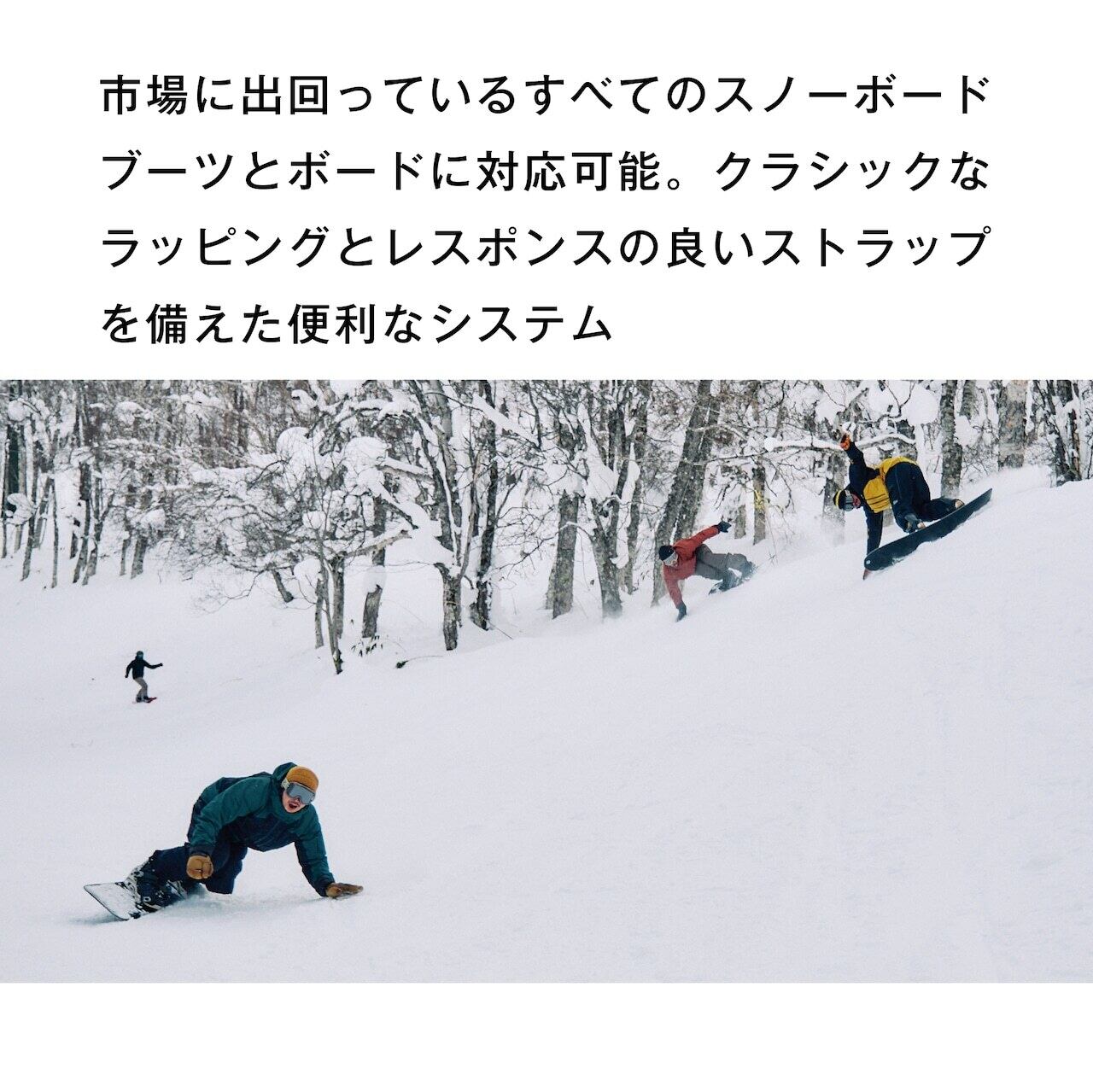 クラシックなラッピングと反応の良いストラップを備えた便利なシステムで、現在市販されているすべてのスノーボードブーツとボードに対応。