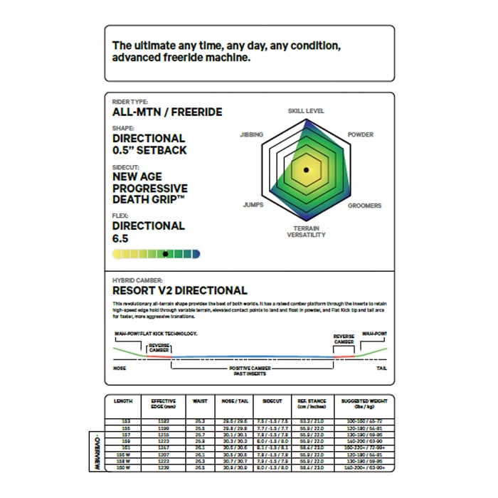 フリーラン、カービングはもちろんパウダーや地形遊びなどのフリースタイルまでオールジャンルを快適にこなします。