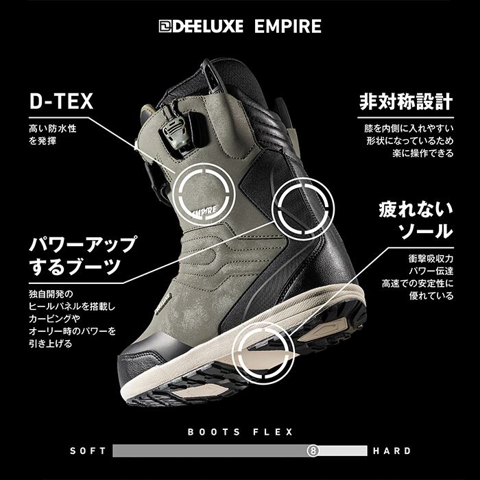 24-25モデル. DEELUXE .『 EMPIRE 』. Dark Olive . ディーラックス . エンパイア . ダークオリーブ . カービング . パーク . パウダー . グラトリ . フリーラン . スノーボード . ブーツ