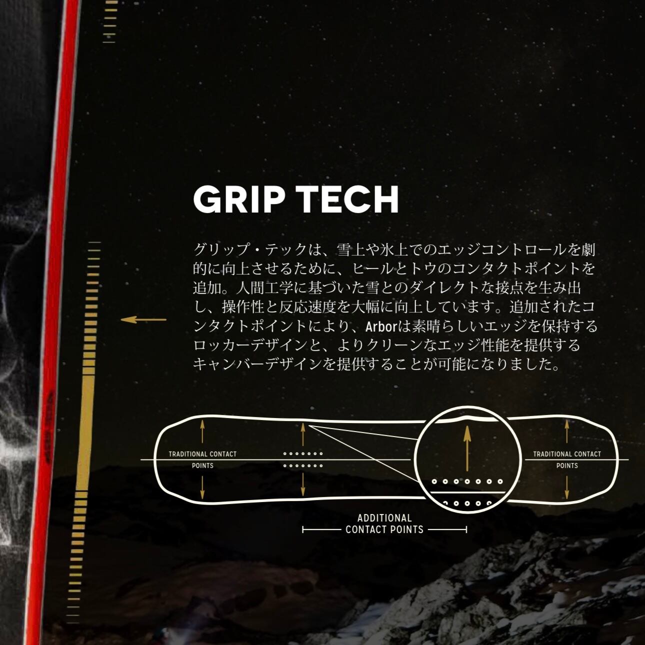 サトリは、ARBORのシステムキャンバープラットフォームをベースに作られたマウンテンツインデザインの、短めでボリュームがあり、パウダーを愛するスノーボードです。