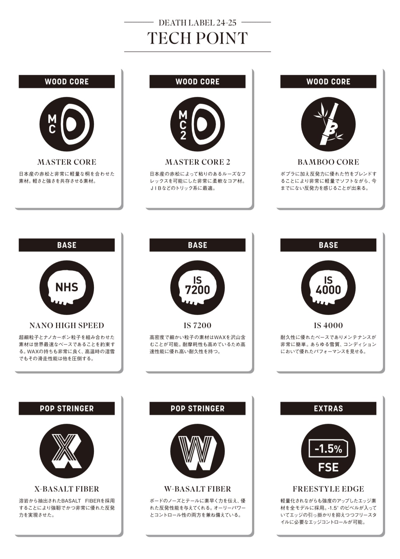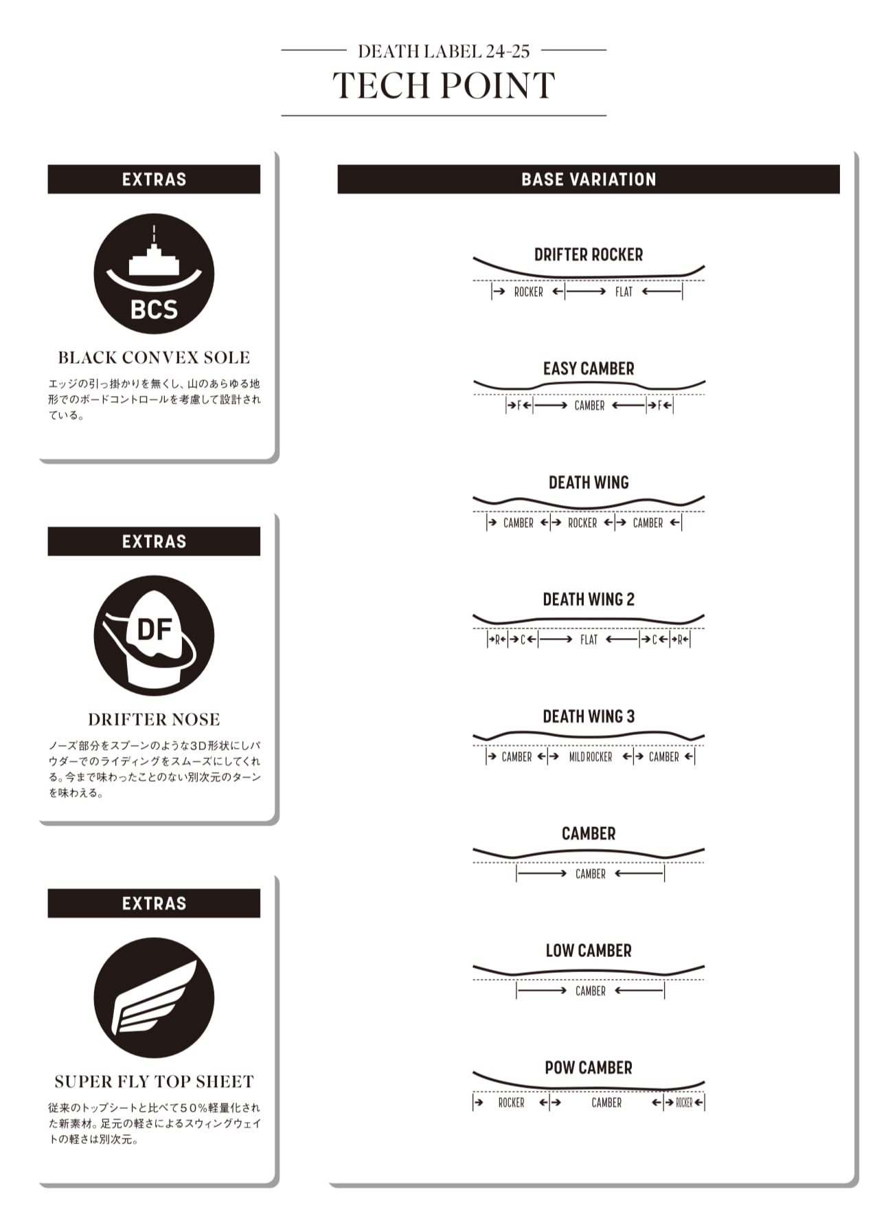 24-25モデル. DEATH LABEL .『 DEATH MACHINE 』. デスレーベル . デスマシーン . キャンバー . パウダー . バックカントリー . カービング . パーク . フリーラン . グラトリ . スノーボード