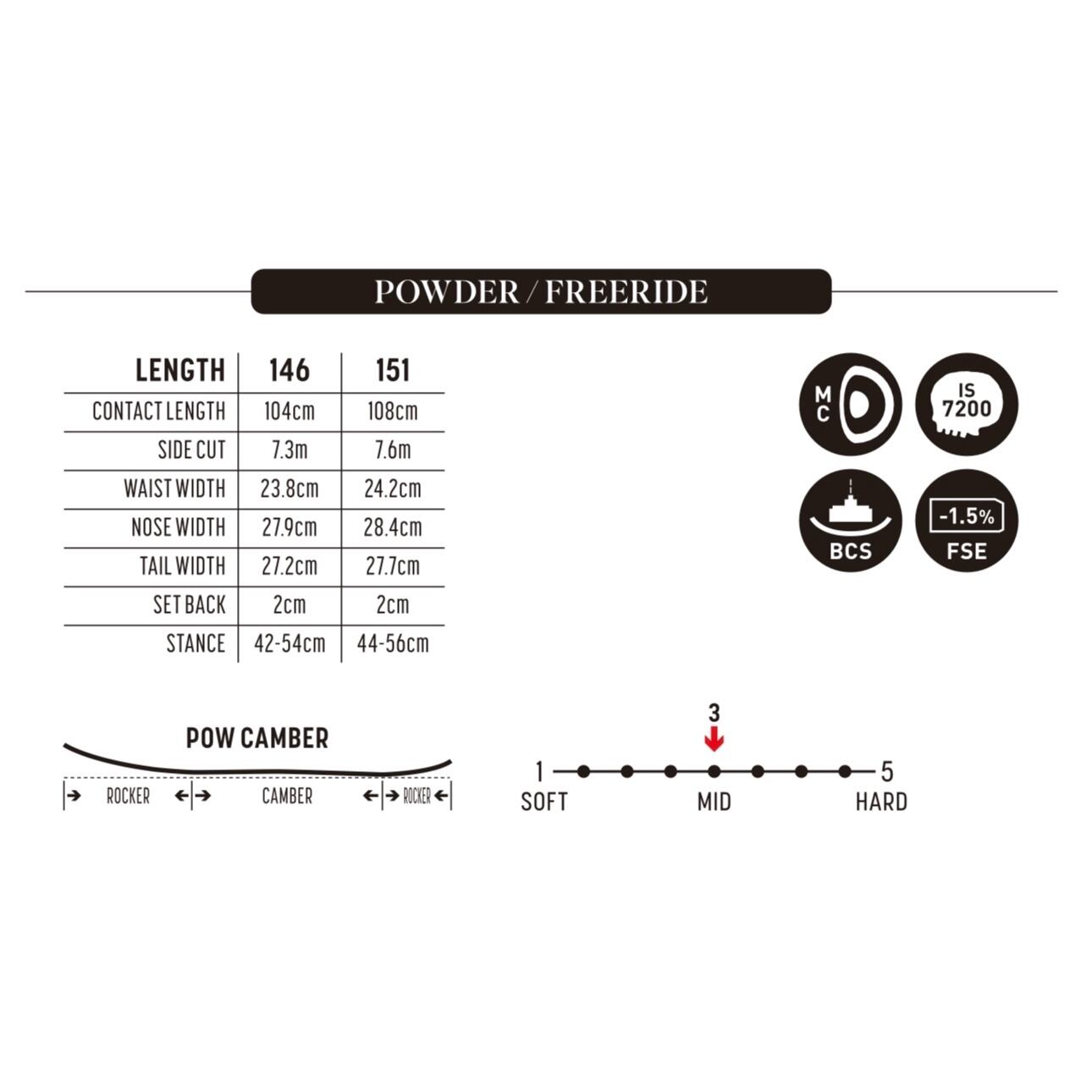 ノーズのロッカーを長く設定することでサイドカントリーやバックカントリー、ツリーランにも対応する浮力とライディング能力を秘めています。