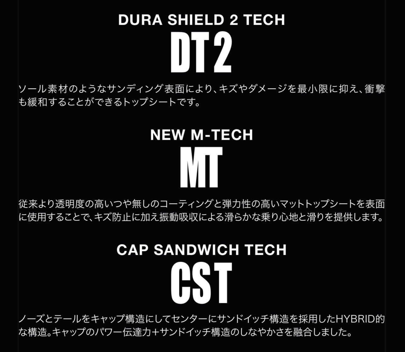 ツインチップシェイプに、芯材は超軽量ウッドコアをソフトフレックスに調整し、足元は放射線状に強化されたウッドコアを配列。
