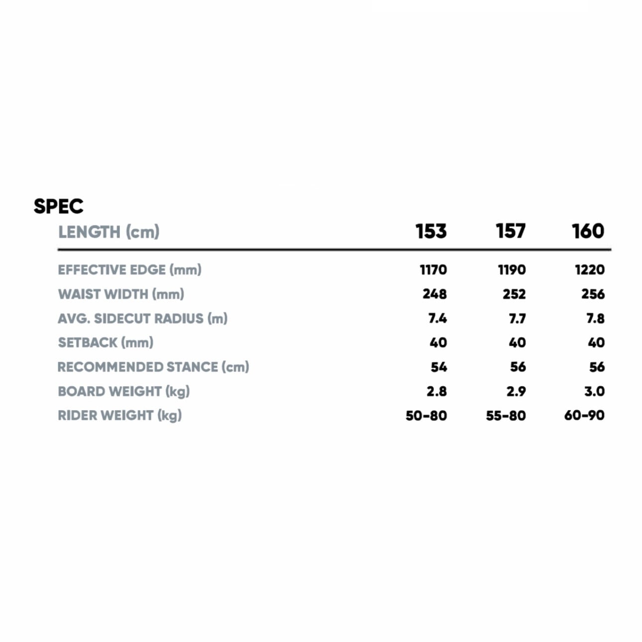 パウダーでのフローティングとクイックな切り返し、カービングでの優れたエッジグリップと走る反発、荒れた雪面やハイスピードでの安定感、キッカーでのハイエアーとリカバリー、グランドトリックでのサバキなど、地形やジャンル、レベルを問わずライダーのスキルを最大限生かす、またはそれ以上のパフォーマンスが可能なので誰もが満足します。