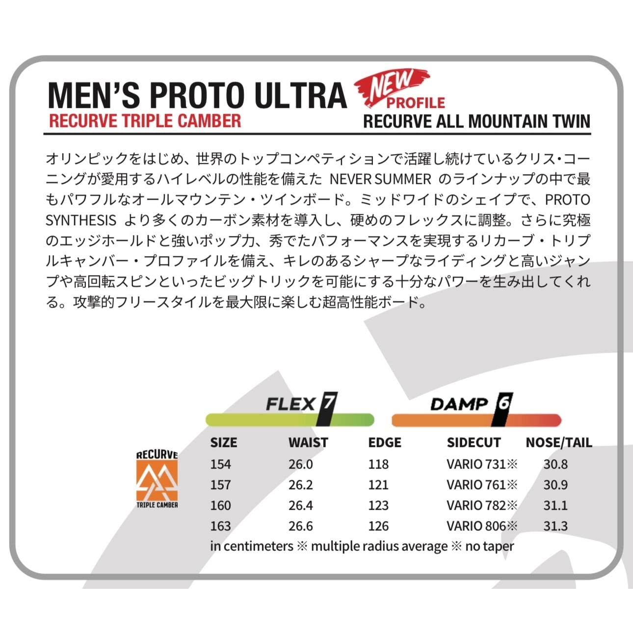24-25モデル . NEVER SUMMER .『 PROTO ULTRA 』. ネバーサマー . プロトウルトラ . トリプルキャンバー . パウダー . バックカントリー . カービング . パーク . フリーラン . グラトリ . スノーボード