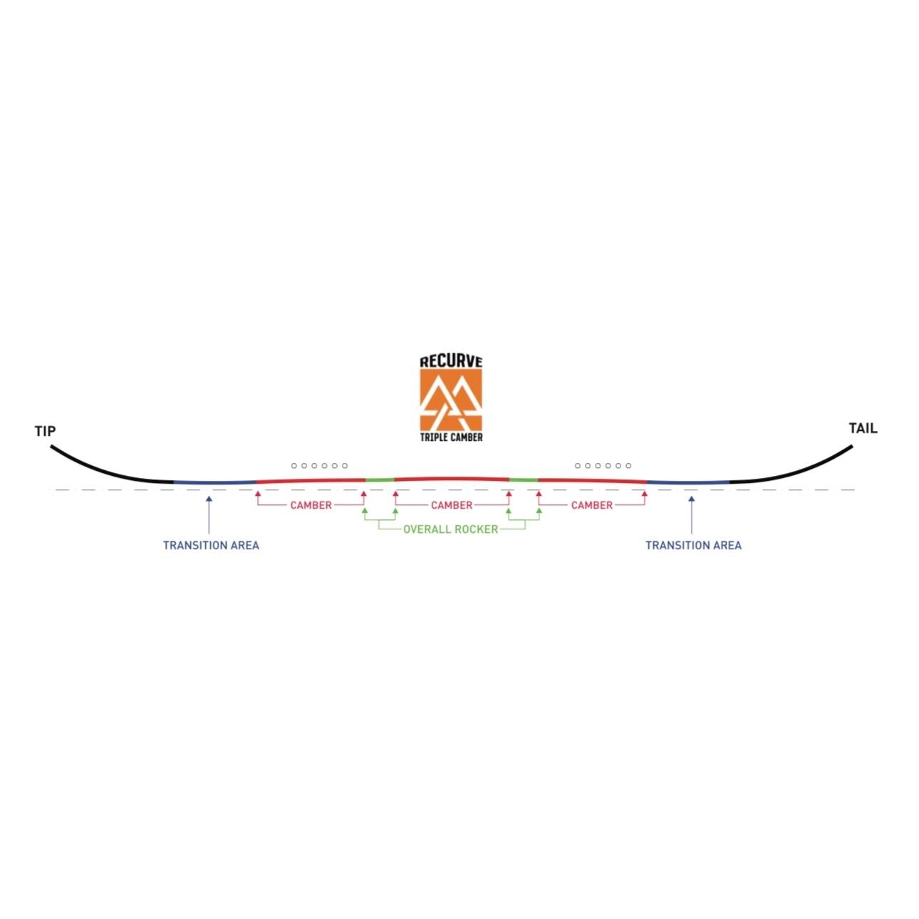 さらに究極のエッジホールドと強いポップカ、秀でたパフォーマンスを実現するリカーブ・トリプルキャンバー・プロファイルを備え、キレのあるシャープなライディングと高いジャンプや高回転スピンといったビッグトリックを可能にする十分なパワーを生み出してくれる。