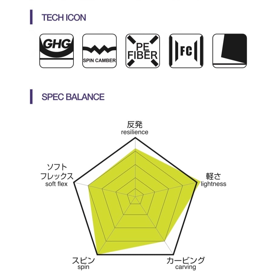 カモメの翼のようなダブルキャンバーソール形状は低速でのスピン、ドライブ、(ずらし)が容易です。
