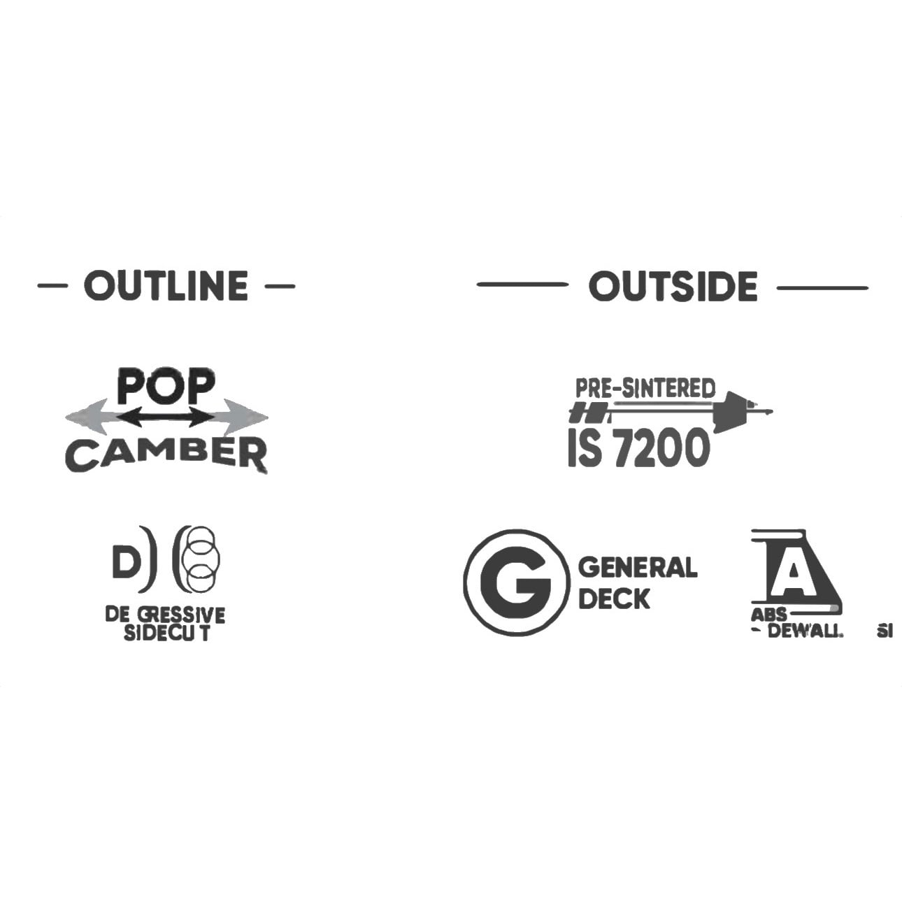 一番評価が高かった経験値を超えるトリックを可能にし記超軽量化ポディはそのままに、そして軽量化だけではなく、絶妙な設計で出来上がったハイブリッドキャンバーが「弾き」「すらし」「エッジグリップ」の相反する性能をバランス良く整え、先端に配 置されたハニカムコアHC-GTがポードの重さを忘れさせ異次元の高回転を可能にします! 更にノーズ、テールに配置されたカーポンV-RDDとセンターフレックスの絶妙如Cランスが爆発的な反発を生み、半端じゃないノー リーの高さを可能にします。
