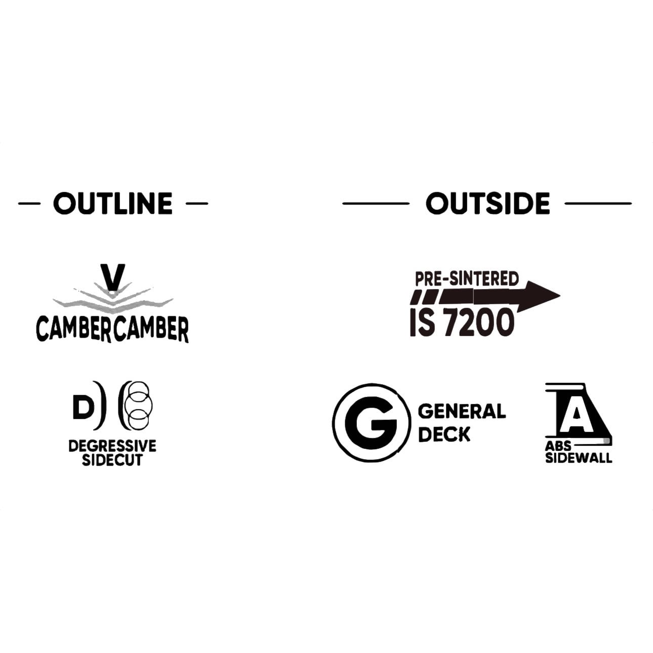 そして、ノーズとテールに配置されたカーボン V-ROD がプレス時に、最上級の安定感を作り上げ、高反発を生み出し、弾きの高さを異次元のものにしてくれます。 更に HC-GT 構造が、ボード先端の重量を極限まで減らし、経験値を超える高回転を可能にします!