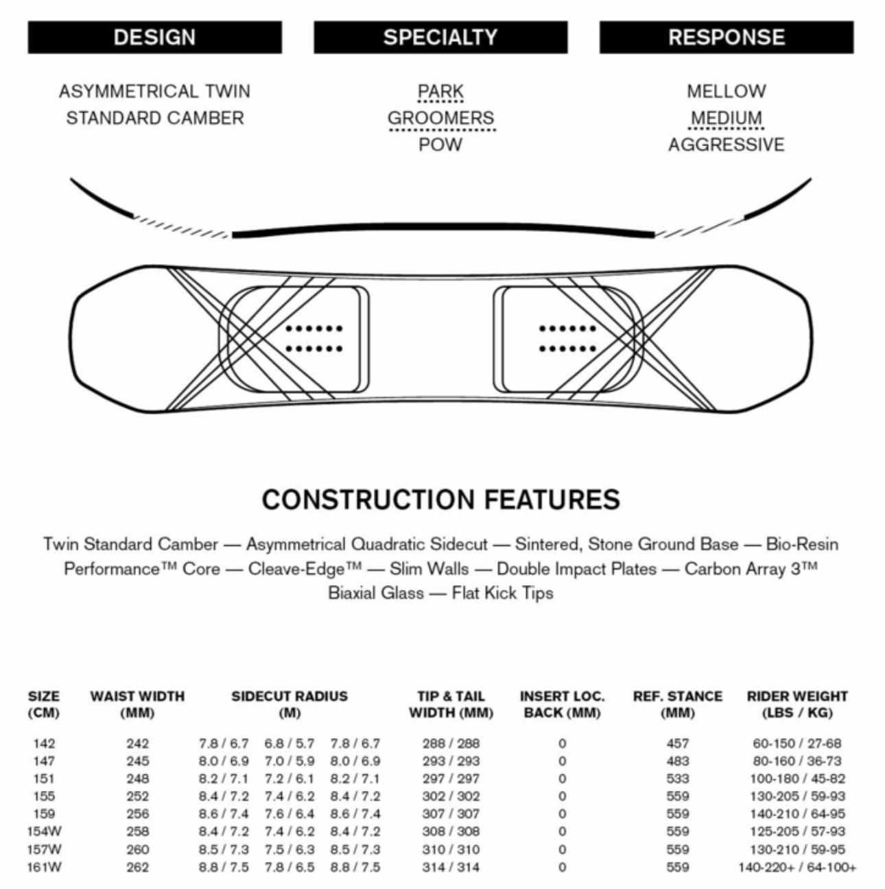 Asymmetrical Quadratic SidecutとTwin Standard Camberの組み合わせで、誰でもどこでも楽しむことができます。