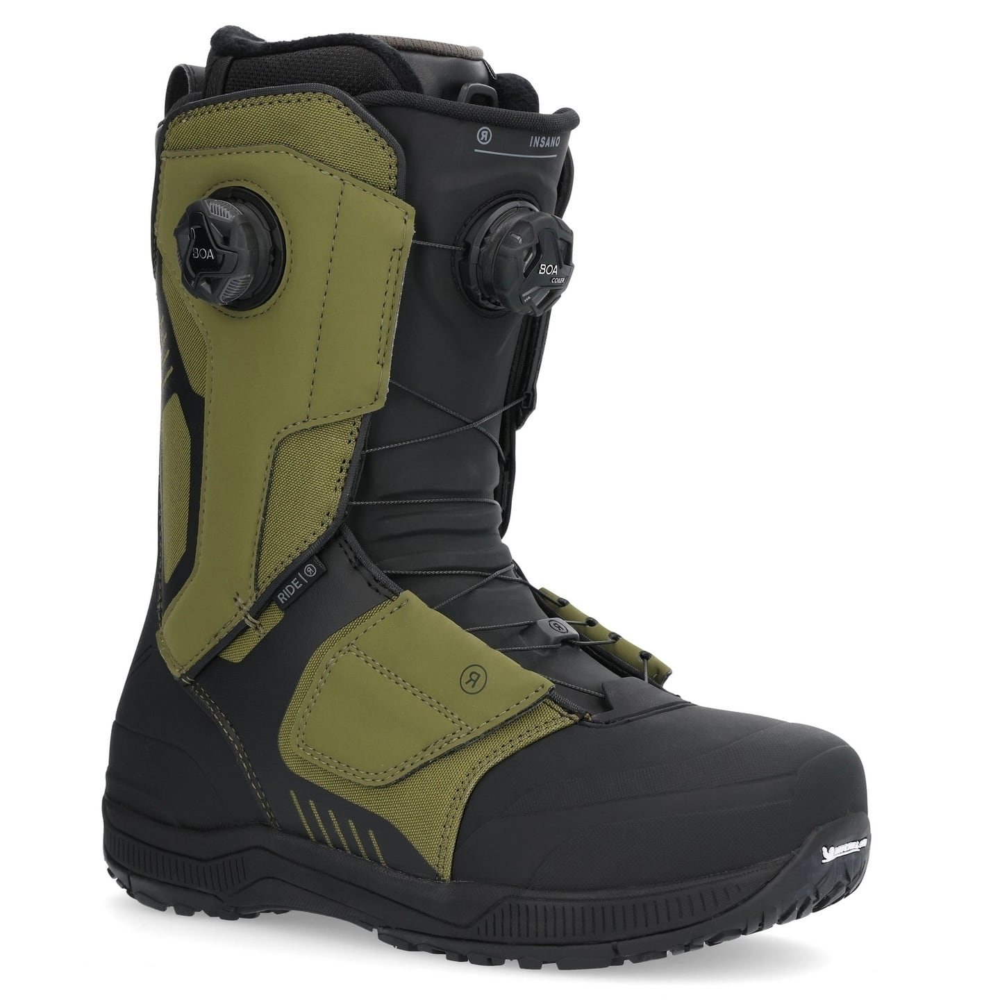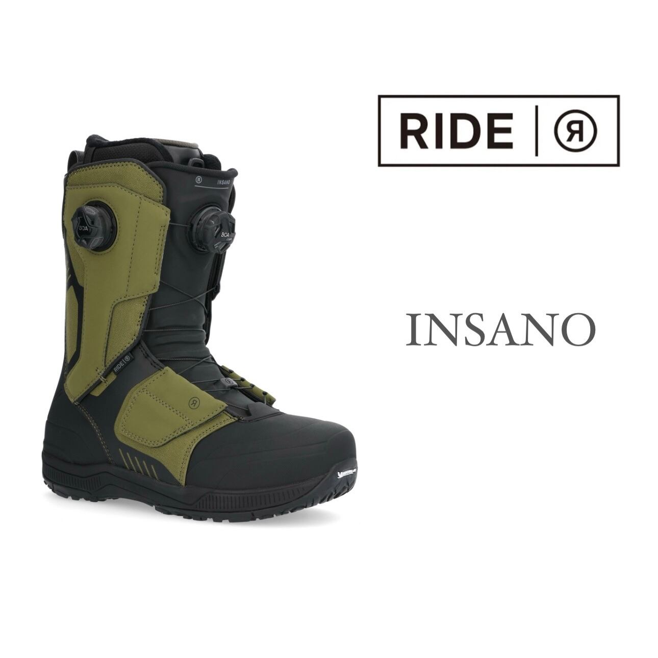 24-25モデル . RIDE .『 INSANO 』. Olive . ライド . インサノ . オリーブ . デュアルボア . パウダー . バックカントリー . カービング . フリーラン . フリーライド . パーク . グラトリ . フリースタイル . スノーボード . ブーツ . 熱整形