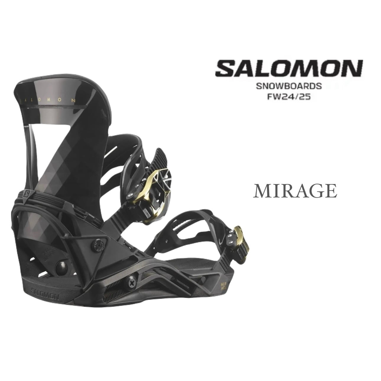 24-25モデル . SALOMON .『 MIRAGE 』. Black . サロモン . ミラージュ . ブラック . シャドウフィット . パウダー . バックカントリー . カービング . パーク . フリーラン . グラトリ . スノーボード . バインディング . ビンディング