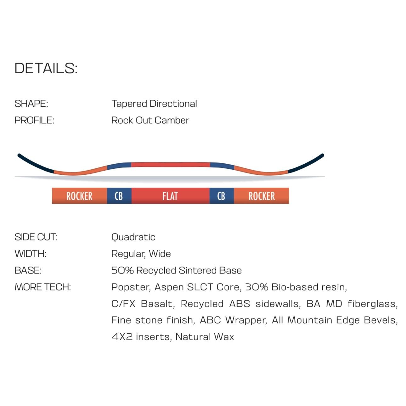 硬めのフレックスのポップスターコアにロックアウトキャンバーとC/FX バサルトを採用し、高速域のライディング時にレスポンスと安定性を提供します。