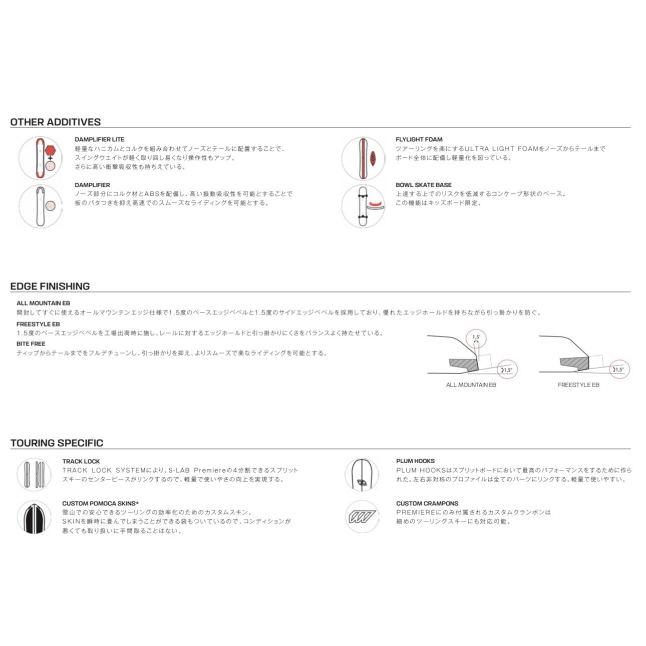 短めのサイドカットと太めなテーパードディレクショナルシェイプの組み合わせがターンの入りと抜けに躍動感と機敏さを提供します。