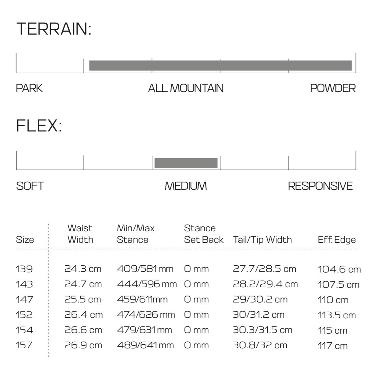 太めなテーパードディレクショナルシェイプが最高の敏捷性を提供し、どんな雪のシナリオも特別なものへと変えてくれます。