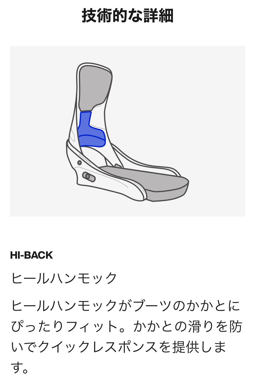 あらゆる斜面を滑り倒すために設計され、優れたホールド感とレスポンスを提供するアンクルのハンモックストラップやハイバックのヒールハンモックを搭載。
